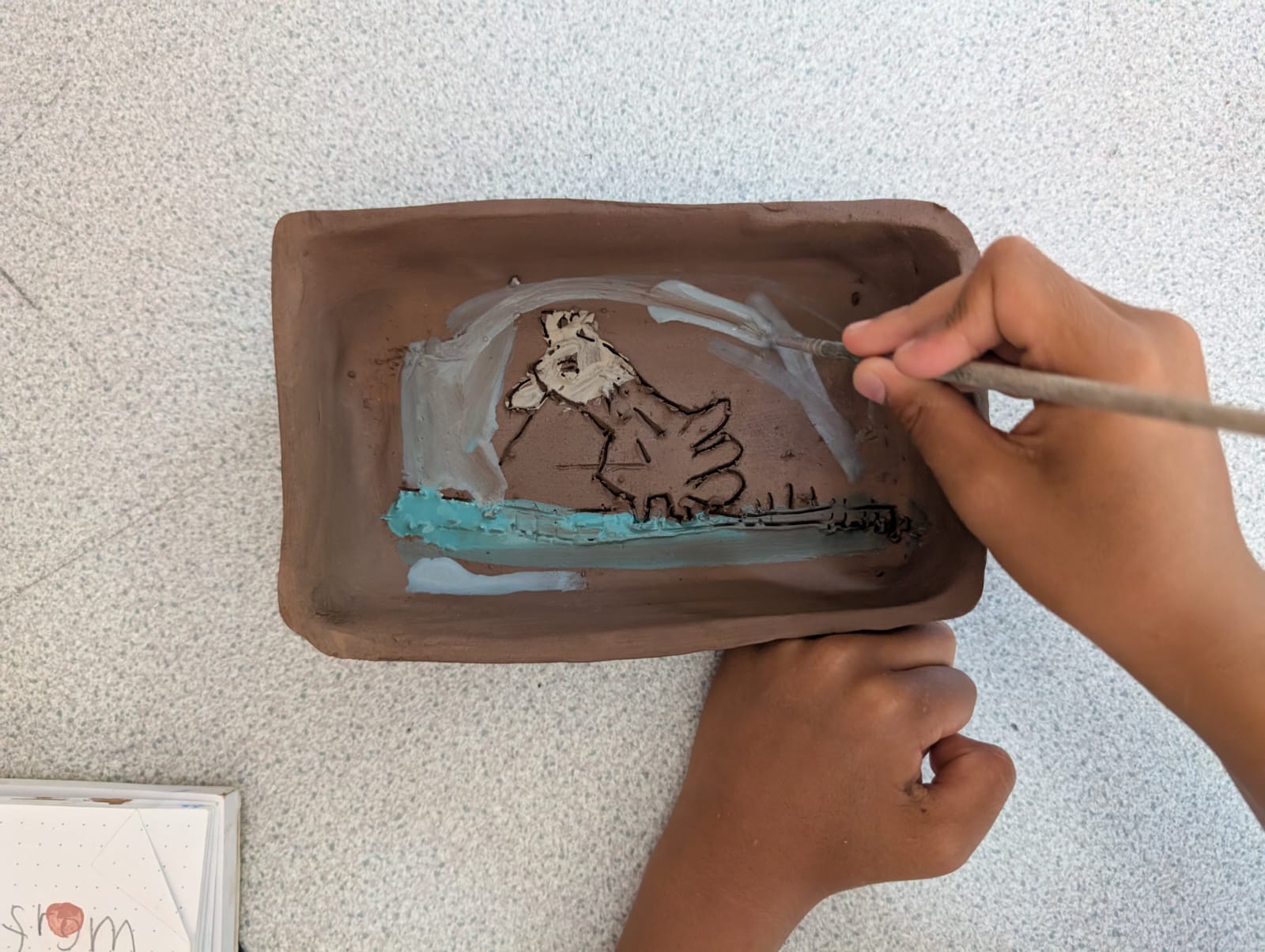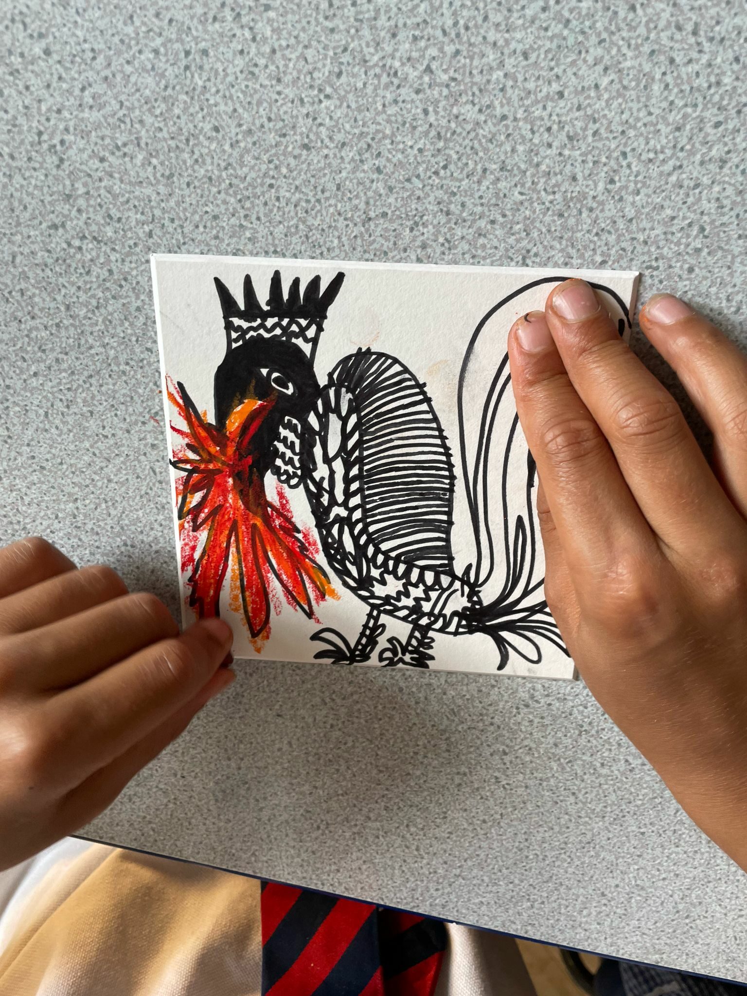 Using a story as the framework children discover other artist’s work in context as well as all kinds of materials from printmaking to painting to pottery. Drawing from observation is at the core of many activities as well as developing confidence, critical awareness and collaboration. Each session involves ‘Good Studio Practice” from planning to tidying, to ending with a moment to rest and reflect.